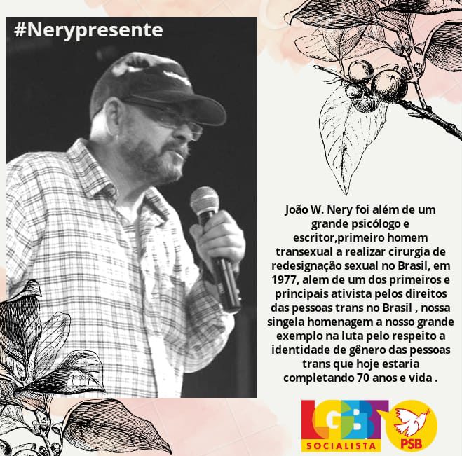 João W. Nery foi além de um grande psicólogo e escritor,primeiro homem transexual a realizar cirurgia de redesignação sexual no Brasil, em 1977, alem de um dos primeiros e principais ativista pelos direitos das pessoas trans no Brasil , nossa singela homenagem a nosso grande exemplo na luta pelo respeito a identidade de gênero das pessoas trans que hoje estaria completando 70 anos e vida .