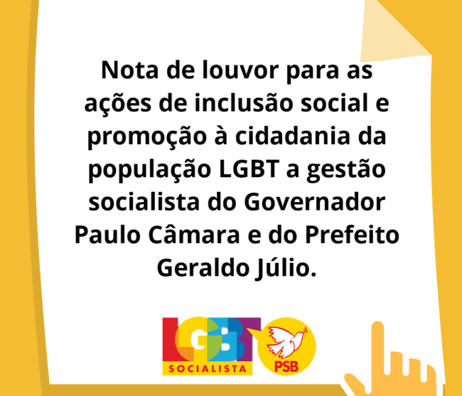 maio22019 Nota de louvor para as ações de inclusão social e promoção à cidadania da população LGBT a gestão socialista do Governador Paulo Câmara e do Prefeito Geraldo Júlio.